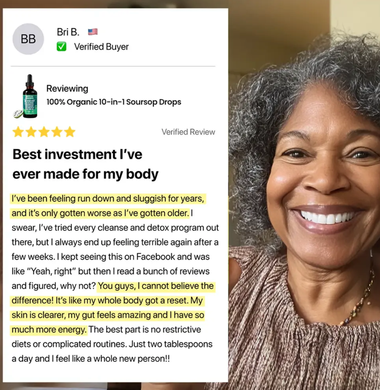 Soursop is a great start, but our 10-in-1 formula takes your well-being to a whole new level. We've supercharged soursop by adding nine more powerful natural helpers – like ashwagandha to ease stress, turmeric to calm inflammation, and vital vitamins to boost your immunity. This means you get truly complete, all-around support for better energy, clearer thinking, and a stronger body, doing so much more than soursop can alone. Why settle for less when you can experience this full-body boost and feel your absolute best?